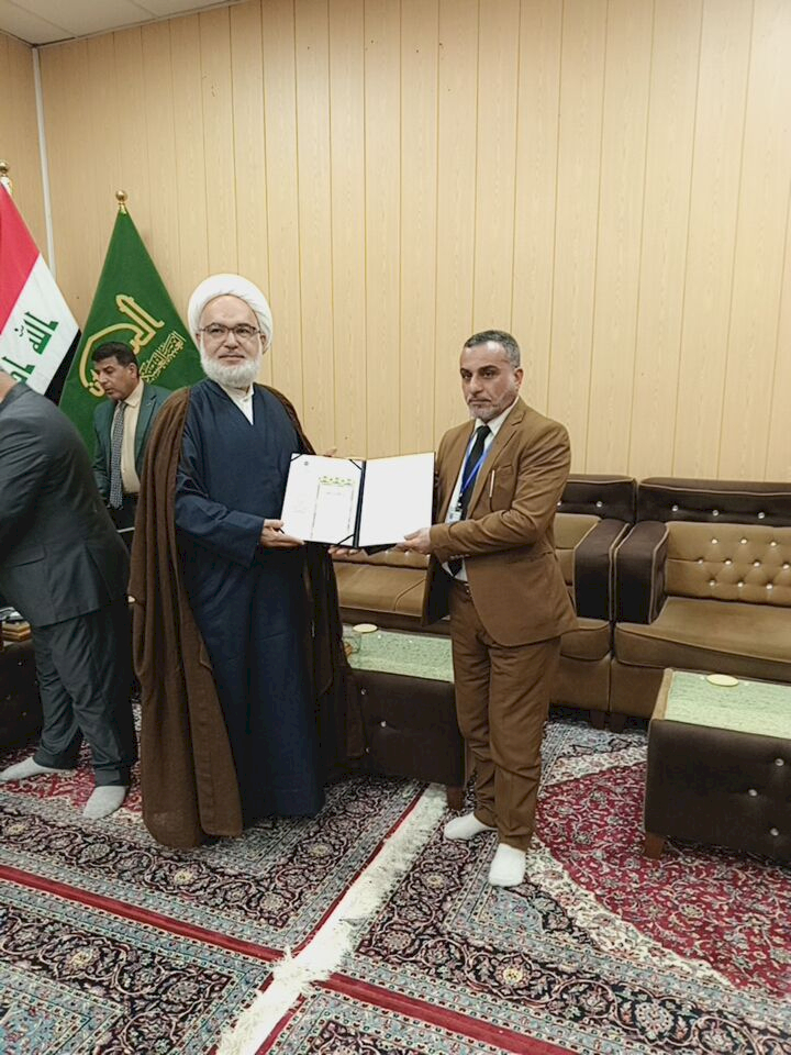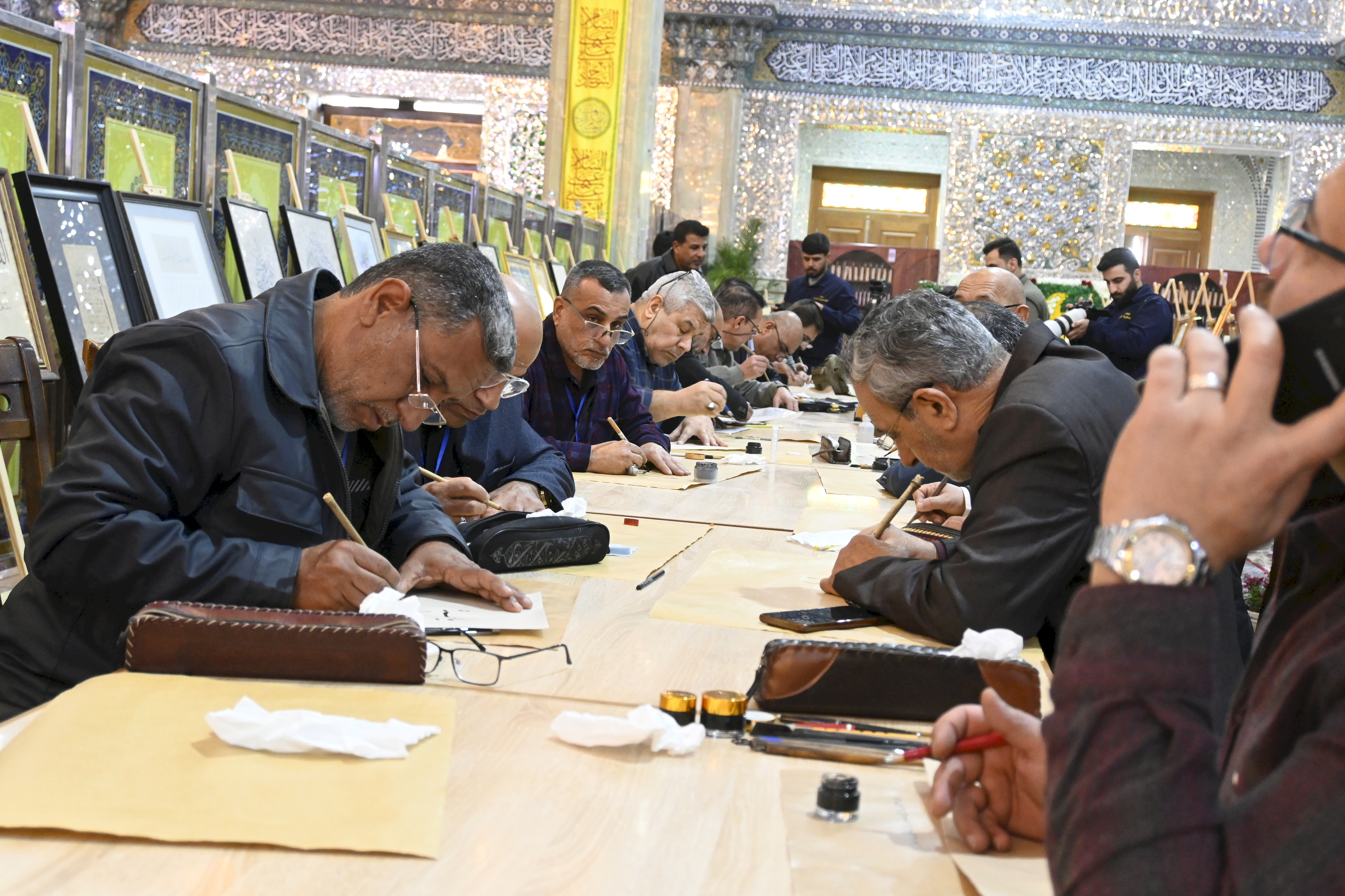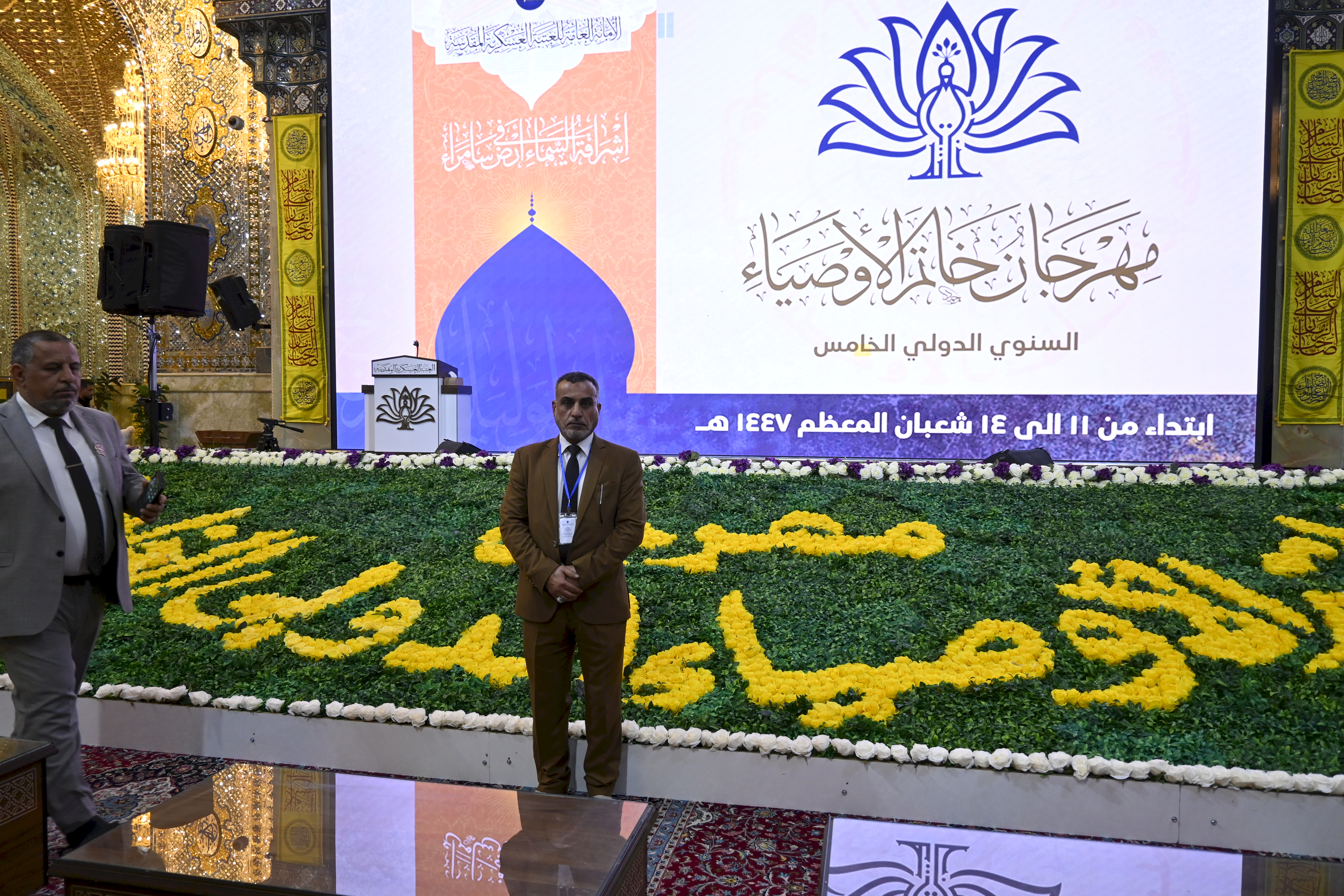 في رحاب أرض (سُرَّ من رأى)، وتحت شعار (إشراقةُ السماء في أرض سامراء)، شاركت وحدة الإعلام متمثلةً بمنتسبها الخطاط المبدع الحاج (عبد العظيم العيناويّ) في فعاليات مهرجان خاتم الأوصياء الدولي الخامس، الذي تقيمهُ الأمانة العامة للعتبة العسكرية المقدّسة، احتفاءً وإشراقًا بذكرى بزوغ فجر الأمل الموعود ولادة الإمام المهدي المنتظر (عجل الله تعالى فرجه الشريف). وجاءت مشاركة العيناويّ وسط حضورٍ دوليٍ نخبوي، ضمَّ فنانين وخطاطين من (إيران، تركيا، مصر، البحرين، والسعودية، فضلًا عن العراق)، حيث امتزج حبرُ الولاء بجماليات الحرف العربي في المعرض الفني المقام ضمن أروقة المرقد الطاهر للإمامين العسكريين (عليهما السلام). ولم تقتصر مشاركةُ مبدعنا على العرض الفني فحسب، بل تجلّت موهبته في الورشة الفنيّة الحيّة (الخط المباشر) التي أقيمت على هامش المهرجان، حيث خطّت أناملهُ لوحاتٍ ولائية ناطقةً بالحب والجمال، مُهديًا نتاج يراعه إلى خزانة العتبة العسكريّة المقدسةً، لتكون شاهدًا فنيًا في سجل الخدمة المهدويّة المباركة. يُذكر أن المهرجان الذي يستمر للمدة من ١١ إلى ١٥ من شهر شعبان المبارك ١٤٤٧هـ، يهدف إلى إحياء التراث الفني الإسلاميّ وتسليط الضوء على جماليات الخط العربيّ.